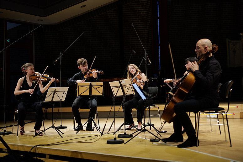 Sich gemeinsam inspirieren lassen, zusammen Neues entdecken und Höhenflüge durch den Kosmos der Kammermusik erleben, darum geht es bei Ensemble!, dem Festival für Kammermusik, die an der Robert Schumann Hochschule einen hohen Stellenwert einnimmt. Kreativ konzipierte Kammerkonzerte treffen hier auf Meisterklassen, intime Klangkunst in der Krypta auf Stummfilm mit Live-Musik.