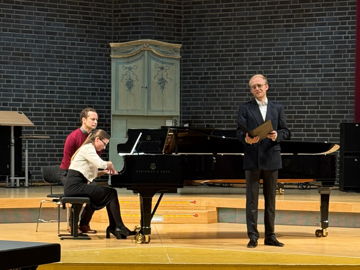Mit einer fulminanten Vorstellung hat der Studierende Valentin Ruckebier aus der Klasse von Prof. Konrad Jarnot in diesem Jahr den Rometsch-Wettbewerb für Solokünstler*innen gewonnen. Platz 2 teilen sich der Violinist Eryu Feng aus der Klasse von Prof. Yamei Yu und der Oboist Pijus Paškevičius aus der Klasse von Prof. Ralph van Daal. Platz 3 geht an die Klarinettistin Heejin Yang aus der Klasse von Prof. Andreas Langenbuch und den Saxophonisten Jen-Hong Wu aus der Klasse von Prof. Martin Hillner. Den Preis für die beste Interpretation eines zeitgenössischen Stückes hat sich Pijus Paškevičius verdient.