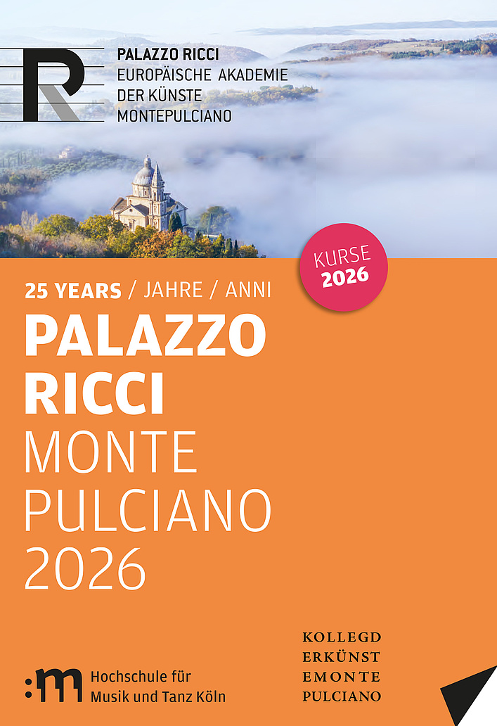 Wer denkt, wenn er an die Toskana denkt, nicht unmittelbar an malerische Landschaften und altehrwürdige Gebäude. Montepulciano in der Toskana bietet aber mehr als nur das Idealbild einer toskanischen Kleinstadt: Junge Künstlerinnen und Künstler haben den traditionsbewussten Ort längst für sich entdeckt. Neben dem Festival des Cantiere Internazionale d`Arte sind es die Veranstaltungen der Europäischen Akademie für Musik und Darstellende Kunst im Palazzo Ricci, die Kunstschaffende und Kunstinteressierte aus aller Welt in die Stadt ziehen. Das Kolleg der Künste hat hier Ort geschaffen, an dem Studierende der Robert Schumann Hochschule und der 6 weiteren Kunst- und Musikhochschulen des Landes NRW mit ihren Lehrenden ein einzigartiges Arbeits- und Lehrumfeld vorfinden.