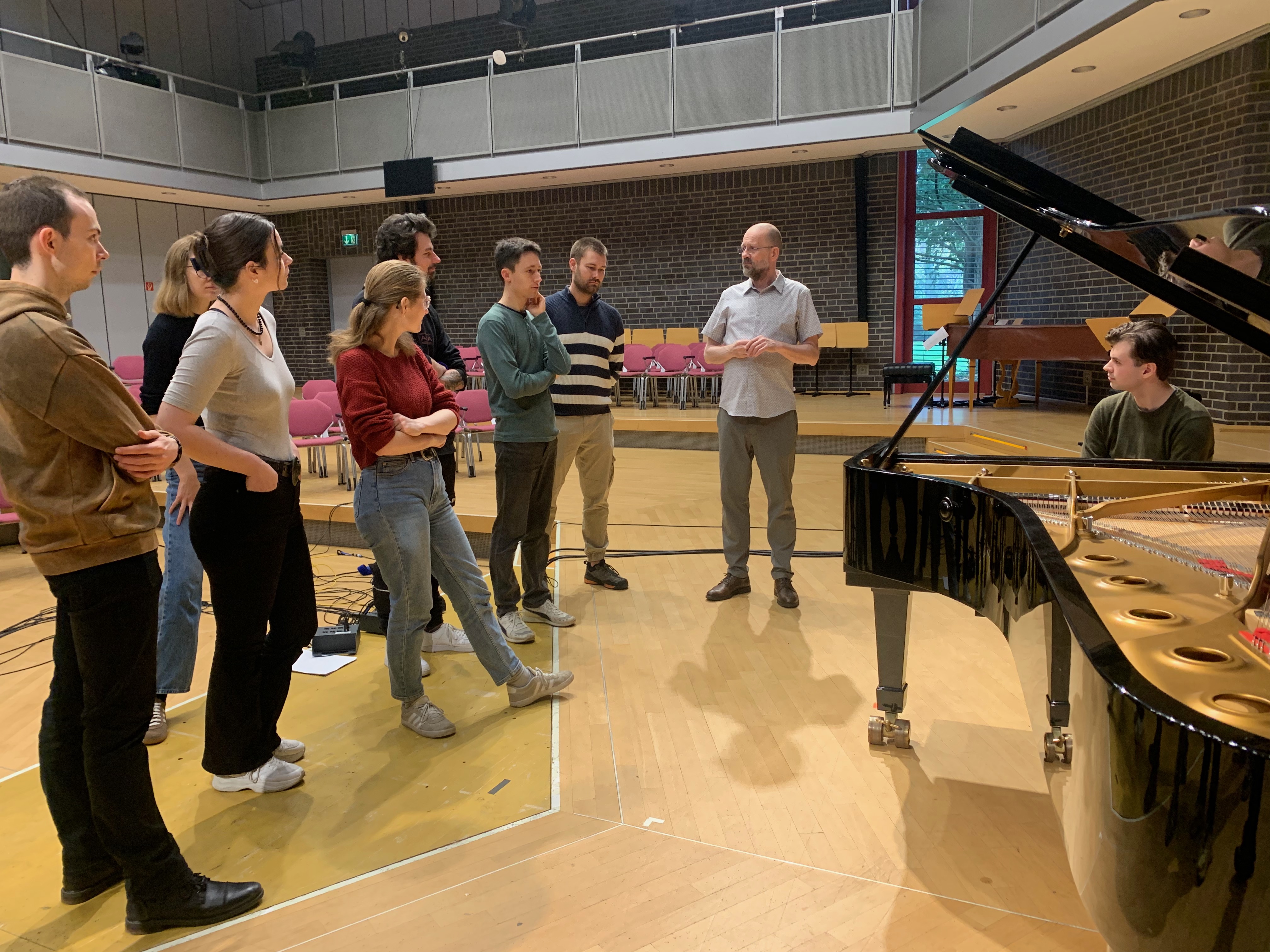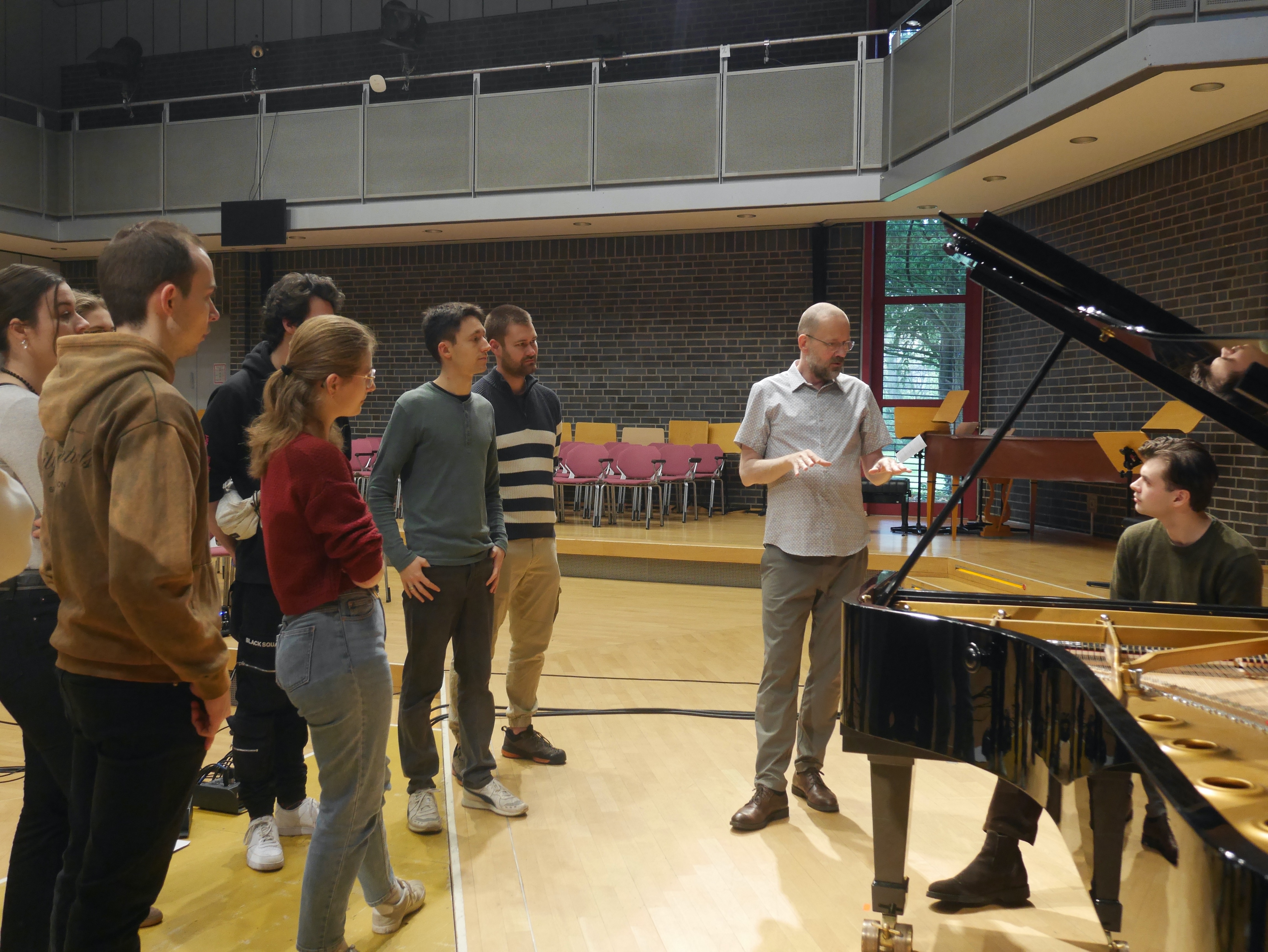 An den Beispielen dieser sehr unterschiedlichen Besetzungen waren die teilnehmenden Studierenden gefordert, ihr Gehör genauestens einzusetzen und die Mikrofone auf den Zentimeter genau auszurichten.
