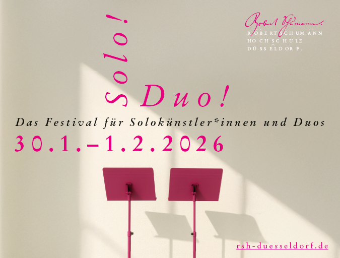 Sich selbst künstlerisch zu finden und eine eigene musikalische Handschrift zu entwickeln ist die große Kunst für junge Musiker*innen: Die Robert Schumann Hochschule gibt den angehenden Solist*innen eine Festivalbühne. Hier können sich die Studierenden solo oder im Duo präsentieren und ausprobieren.